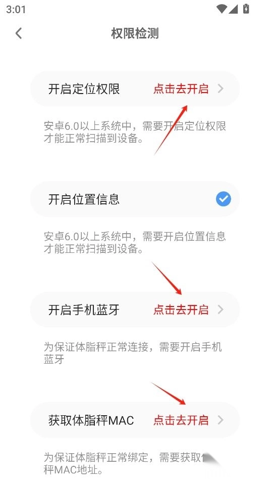 6、开启相关权限就可以扫描您的体脂秤进行连接使用了
