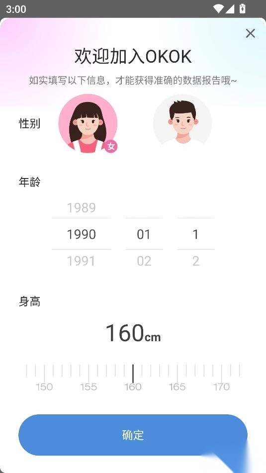 3、填写自己的身体数据信息