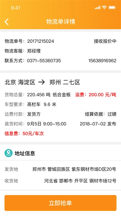 在实际使用时,司机能清晰掌握货物详细信息,随时查看各类交易状况,从而更高效地开展运输工作,享受优质服务。而且,平台会清晰展示所有运输价格,司机只要进入平台,就能迅速上手使用。借助平台,司机可依据自身运营路线,免费查阅货运单信息并报价接单,实现快速运输,享受优质服务,遇到问题也能实时解决。