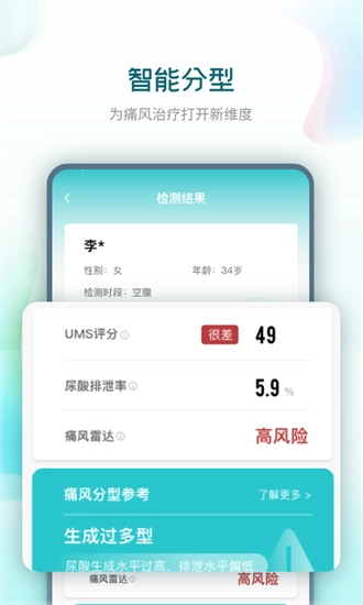 知痛风是针对痛风数字化健康管理的平台应用。搭配乐尔健康自主研发的智能物联网检测设备——「知痛风」智能分型仪,可实现健康指标的全程数据化管理。「知痛风」采用先进的血、尿双样本检测技术,配合智能算法为用户提供“辅助分型”、“痛风预测”、“代谢指标”等具有临床参考价值的指标,在高尿酸血症及痛风的康复管理上已经取得了显著的成效。