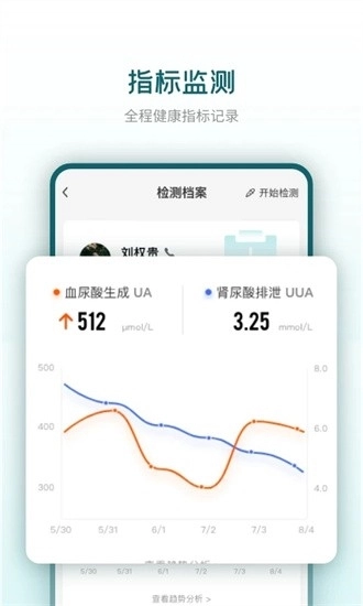 4、便捷的健康管理工具:直接与乐尔的检测设备联动,实时监控血尿酸水平,让用户随时了解自己的健康状况。