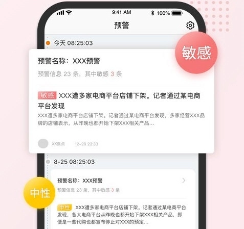 4、预警中还将信息进行了不同程度的划分,从预警中能看到敏感、中性以及更多程度的预警信息。