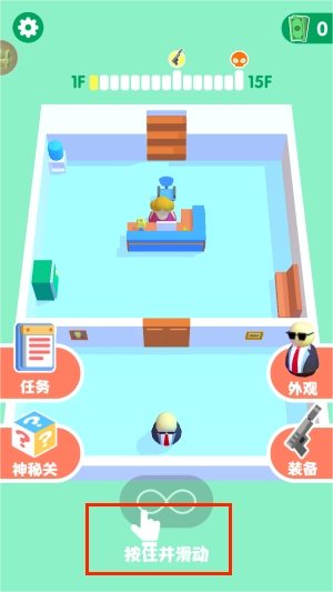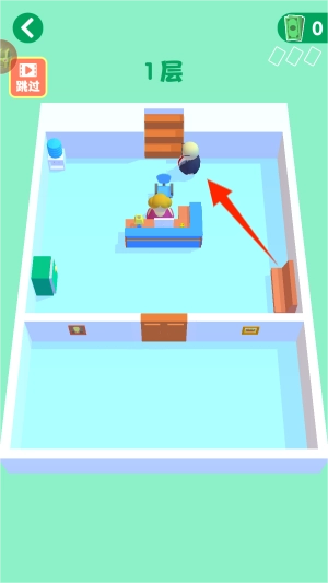 2、你需要控制人物从门口通过障碍物和关卡到达楼梯口。