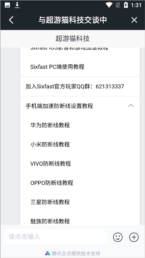 用户在Sixfast加速器的客服页面中根据自己的手机型号进行自行设置