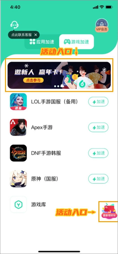 出现次错误请尝试点击会员中心确认当前账号会员是否到期;VIP会员支持加速应用,SVIP支持应用和游戏加速,或者手动切换加速线路尝试