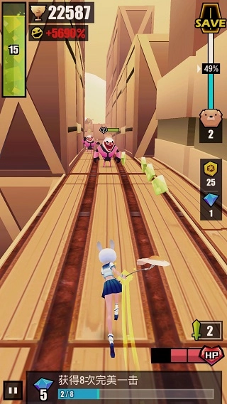 在Fever挑战中,玩家依旧要控制Doris翻滚跳跃击杀小丑,获得更高的分数。但不同的是!FEVER挑战中,你将会获得更高的分数,这些分数都会计入结算总分数,帮你冲击排行榜哦!