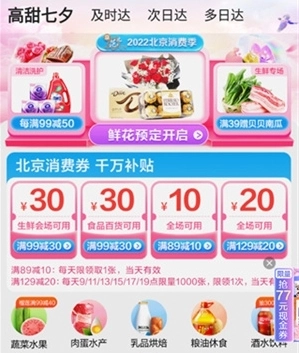 3、选择后进入主页面。超市中的商品和实体店中是同步显示的,有些地方,例如在北京,也可以购买一些高端进口的生鲜产品,有的时候会有很多优惠,很便宜。