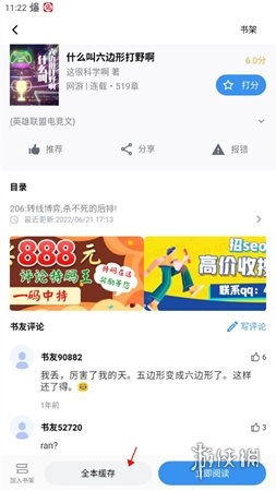 3、在小说的详情页面,找到并点击“全本缓存”或类似的选项。