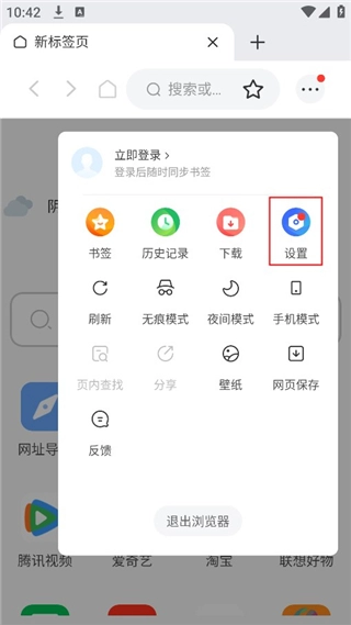 1、在本站联想浏览器hd版后点击右上角红框位置;