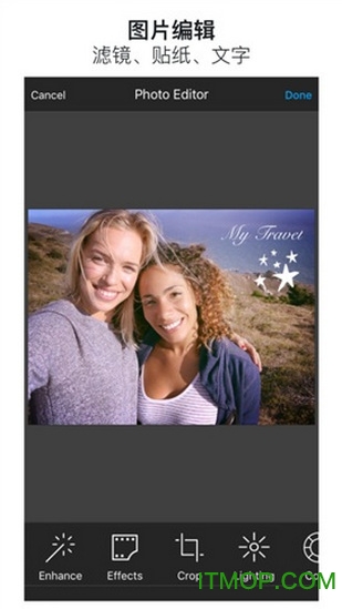 照片拍摄:多款拍摄镜头和滤镜实时拍摄,拍出无需后期处理的精致照片。