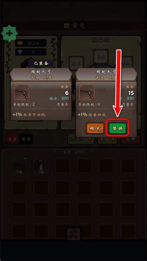 2.选择这种带着绿色箭头的武器。