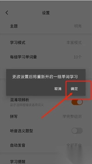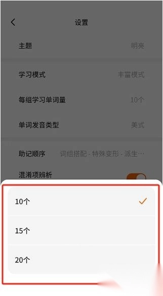 3、点击每组学习单词量自定义设置个数