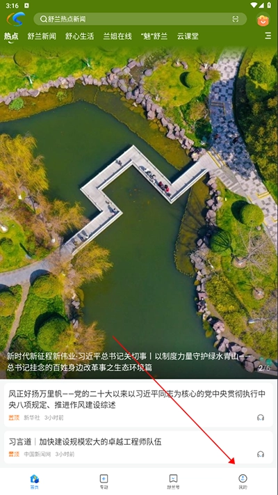 1、随后打开并进入舒兰融媒,在首页底部点击【我的】。