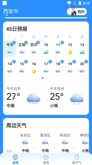 要是您不想因天气突然变化没带伞而被淋成落汤鸡,或者担心旅游到达目的地时天气不佳影响游玩体验,不妨下载当快瑞奇天气(即心悦天气),它将为您的出行天气一路保驾护航!语音播报功能
