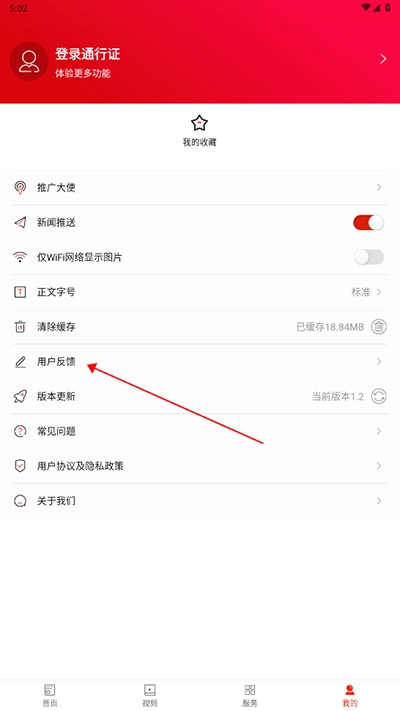 2、在我的界面内,找到并点击“意见反馈”;