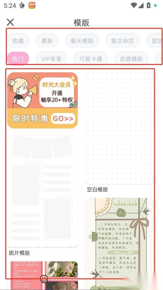 3、选择自己喜欢的手账模板