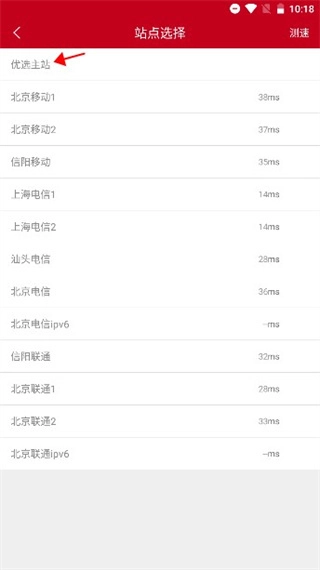 4、接下来点击“优选主站”