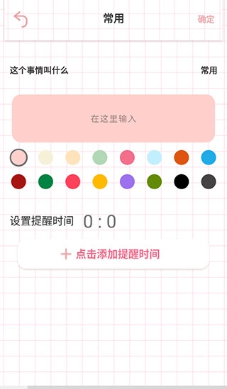 2、点击右上角“+”添加日常事项,可以设置事项名称和提醒时间。