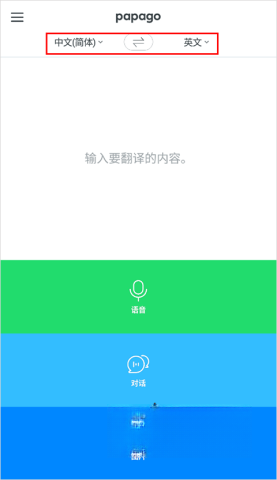 1. 第一步是打开Papago翻译器,接着选定需要的翻译语言,其中左边是输入语言,右边则是目标语言。