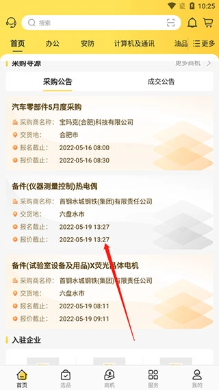 2、点击首页,选择想要采购的项目;