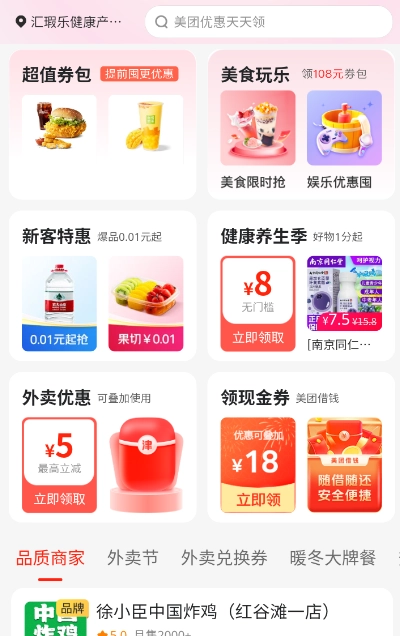 2、这里以美团为例,点击进入可以看到有各种美食的优惠卷。