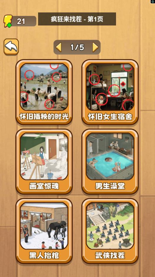 《疯狂找茬儿》是一款以考验眼力为核心的闯关挑战游戏。玩家需要在各式各样的场景里,找出两幅图片之间的不同之处。这些场景包含怀旧插秧、画室惊魂等丰富多样的主题,差异点往往隐藏得十分巧妙,可能是云彩的形状、纽扣的颜色这类细节。游戏还贴心地提供了道具辅助,而且每局的时长设置得比较适中,能让玩家在细致的观察过程中,充分体会到闯关带来的乐趣。