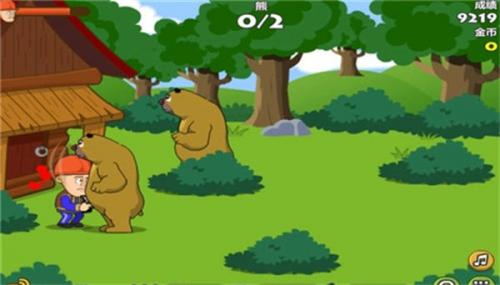 1:在这个游戏里,玩家要扮演光头强的角色,运用各式各样的塔防策略去对抗僵尸熊。