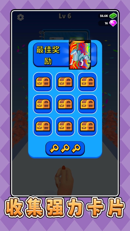 2玩家需要操控自己的角色在变化多样的赛道上奔跑,通过滑动屏幕来让角色进行快速冲刺,在躲避各种障碍的同时,还得精准地收集赛道上的卡牌。