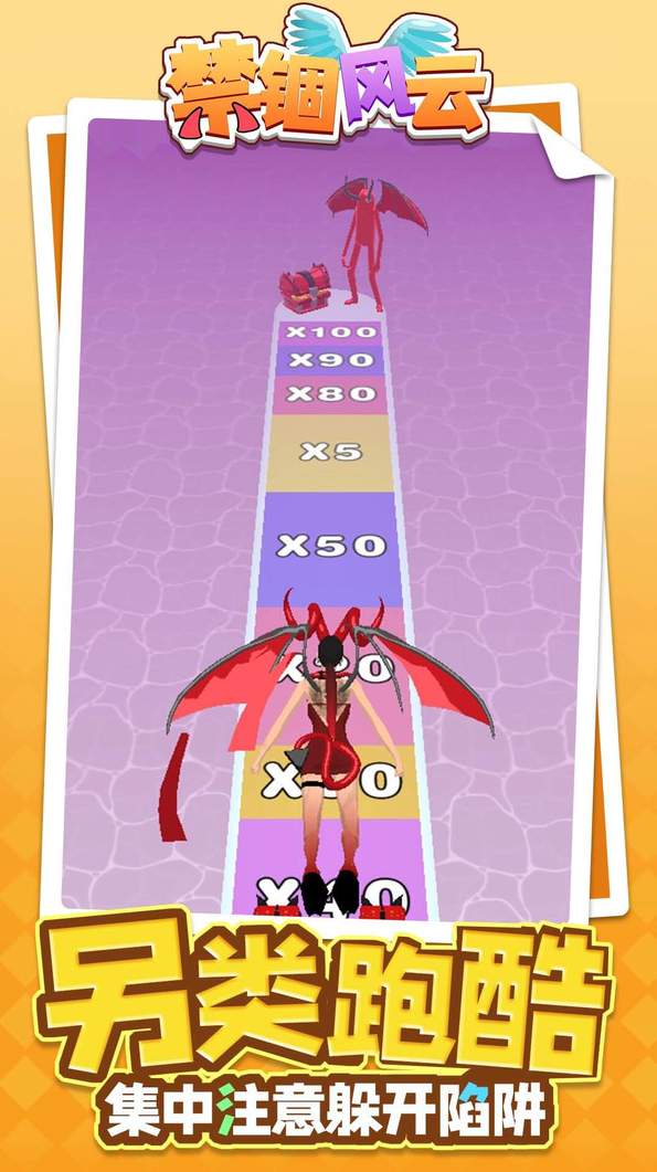 《禁锢风云》是一款3D跑酷竞速闯关游戏,玩家需在九大主题场景中突破智慧陷阱,以天使/魔鬼双形态转换与机关互动躲避障碍物。