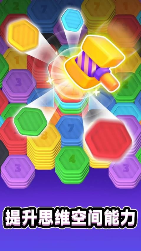 层叠消融大作战是一款围绕消除玩法打造的休闲游戏。游戏关卡里会出现各种颜色的六边形方块,玩家要依据消除规则对它们进行清理,以此让布局更合理,最终达成理想的挑战目标。在不同阶段中,你还能发现一些助力机制,只要好好利用这些机制,就能获得更有利的行动条件,并且及时掌握关键优势,借助部分元素抓住最佳机会。你可以逐步解锁更多六边形方块,把它们用到对应的界面里,能呈现出很棒的设计效果,留意好各个相关现象就行。要是你对这款游戏也感兴趣,那就快来体验一下吧!