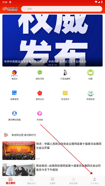 1. 进入手机嵩明融媒的首页,然后点击页面下方的个人中心。