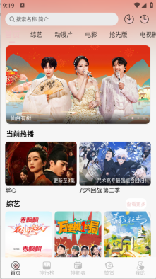 首页顶部栏汇聚了丰富的影视资源,涵盖电视剧、电影、综艺等多种类型。