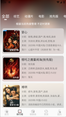 3、“排行”页面,按照当下的热度对影视内容进行了梳理和排序。