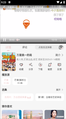 用户点开想要观看的影视资源后,可对集数、播放源等选项进行选择。