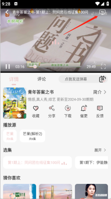 1、点开想要投屏的影视,点击右上角的“TV”。