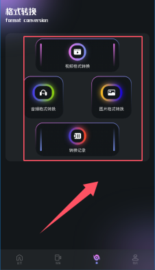 3、碰到格式不兼容的情况怎么办?别担心,“转换”页面为您提供专业的“视频格式转换”“音频格式转换”以及“图片格式转换”服务,还有一目了然的“转换记录”,能有效避免文件丢失哦。