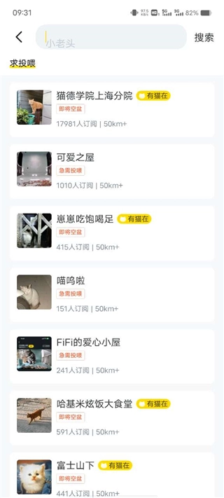 此外街猫还汇集的都是爱猫的人士,用户们不仅在猫友圈与大家一起交流,探讨心得,还会有各种各样的猫屋可以搜索到,只需要点击对应的猫屋就能一起看流浪猫咪吃播,甚至还可以赠送自己的猫粮投喂给流浪猫。