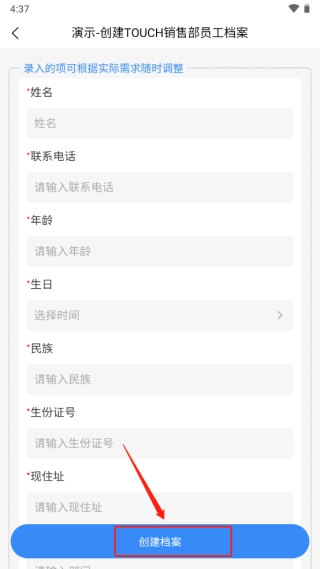 2、即可看到此模板的内容,点击创建档案