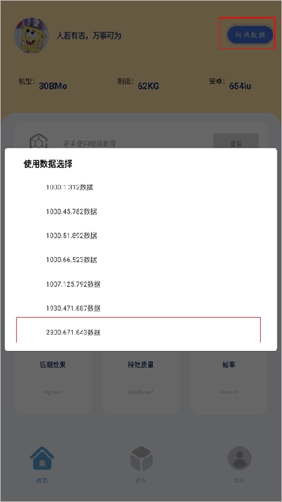 1、第一步,打开帧率猫应用后,你会发现首页右上角存在一个“切换数据”的选项;点击该选项,接着选择最下方的选项。