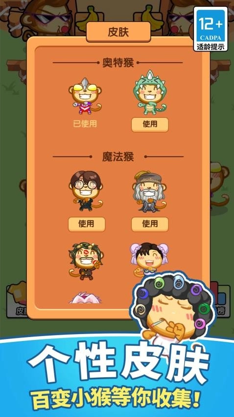 4、许多猴子皮肤选择更换,所有皮肤都能带来不一样的主题风格和视觉效果,还能轻松体验不一样的挑战。
