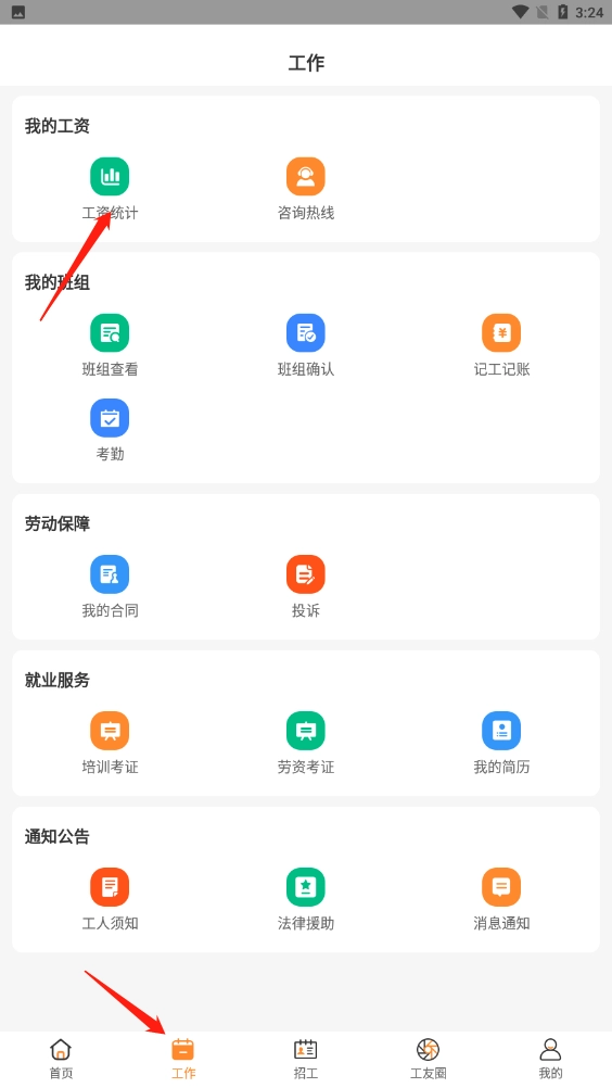 也可以点击下方导航栏中的【工作】,然后再点击【工资统计】也是一样可以查看的。