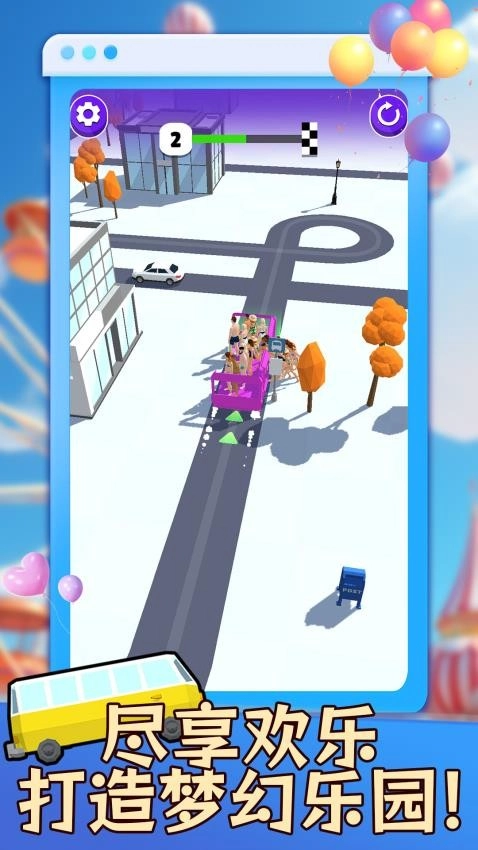 1、玩家在游戏开始时可以选择自己喜欢的巴士,在跑道上规避各种汽车,并领取游戏道具,以快速通关