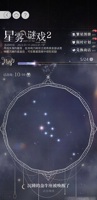 1、按照上图金牛座的星空分布,敲碎冰晶即可解锁金牛座,解锁金牛座后即可在繁星图册里面领取金牛座的奖励。