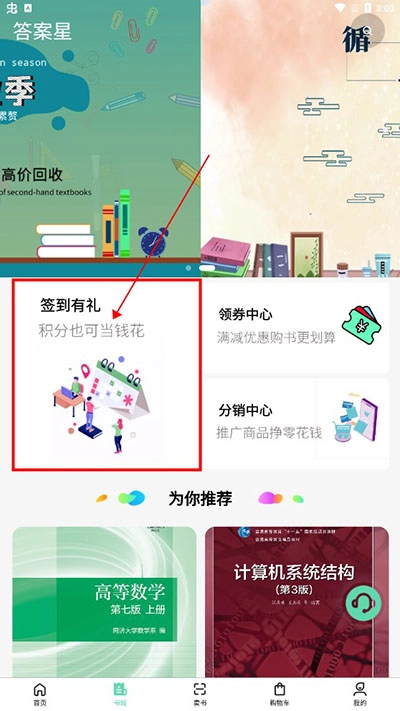 2、点击书城即可看到并且新版的签到连续签到获得的积分会一天比一天高,积分同样可以用来兑换会员哦~