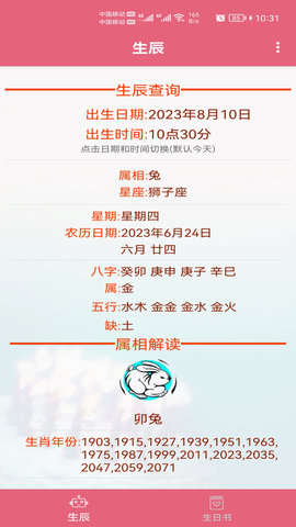 生辰助手是一款十分实用的算命工具,能够助力你更深入地认识自身的命运与运势走向。不管是借助生日书、生辰八字进行剖析,还是通过星座和生肖解读来探究,你都能从中获取具有参考价值的内容,从而为个人的人生规划给予有益的指引。