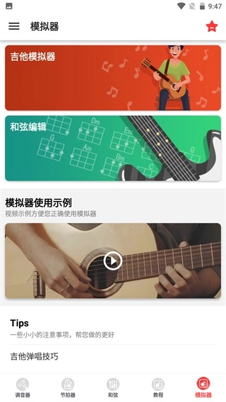 4、吉他模拟器:可以随时随地,在手机上轻松弹奏吉他曲子。