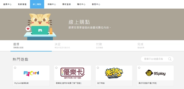 1、点击MyCard上方的「线上购点」选项。