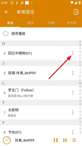 2、点击歌曲右侧的【三个点】图标,可打开歌曲操作菜单。