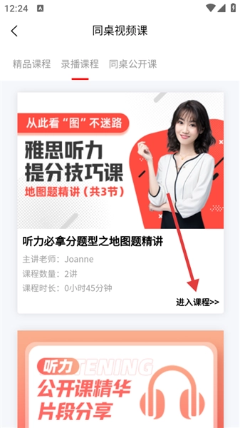 3、在同桌视频课页面,选择想要学习的课程,点击【进入课程】。
