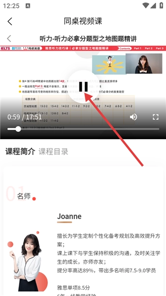 4、进入课程播放页面后,点击播放按钮,就能开始学习该视频课程了。
